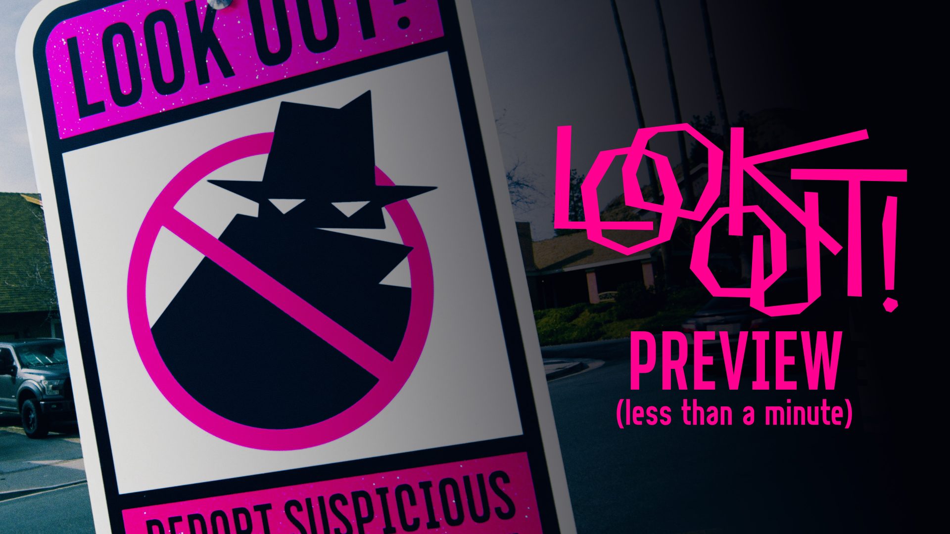 When the criminal in the neighborhood watch sign escapes, a community is thrown into panic. Only through the power of local paranoia and super-funding the police force can any sense of white upper middle-class normalcy be restored. But can this mad criminal be stopped before he spray-paints the property value off every single family home? LOOK OUT!